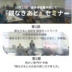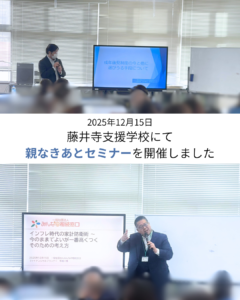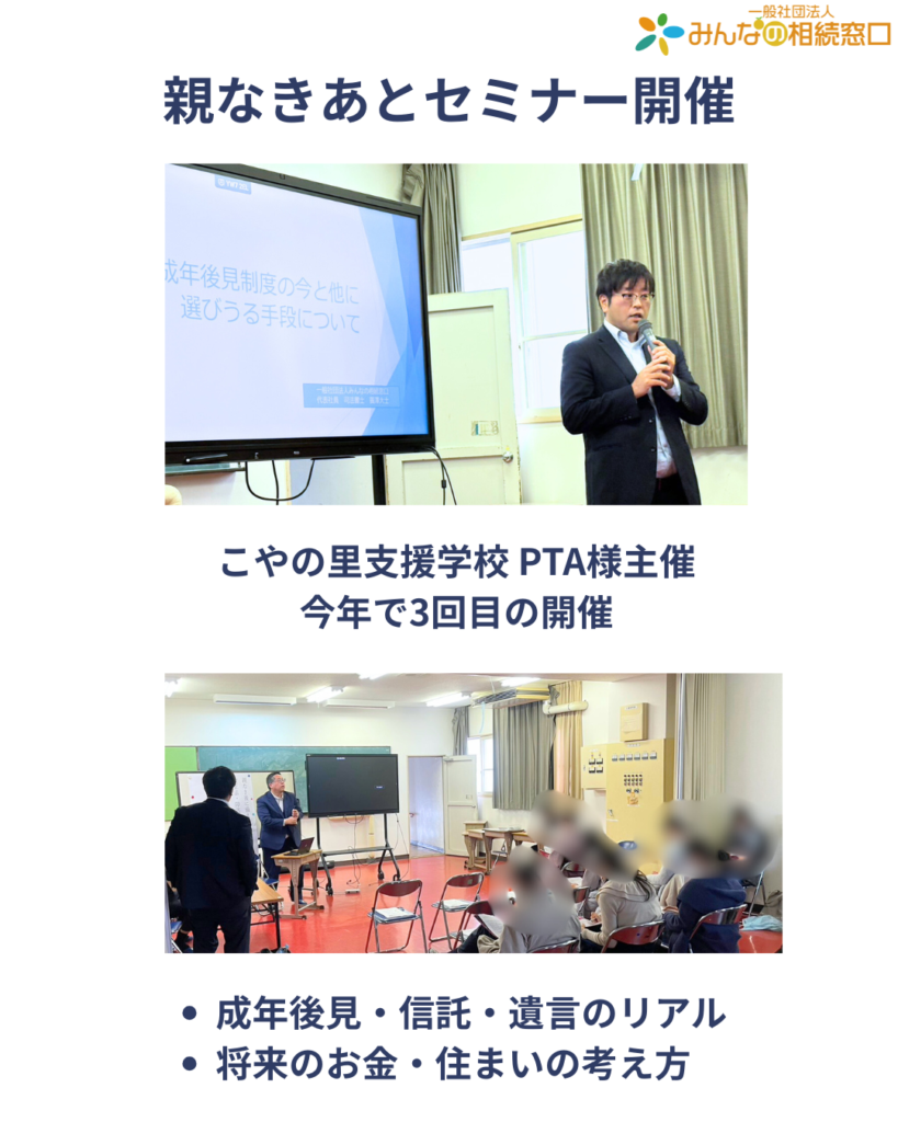 本日、こやの里支援学校にて「親なきあとセミナー」を開催しました。