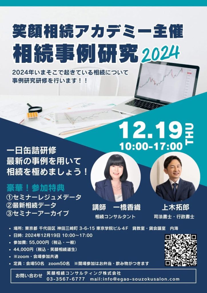 12月19日笑顔相続アカデミー様主催、相続事例研究にて中嶋が講師を務めました。