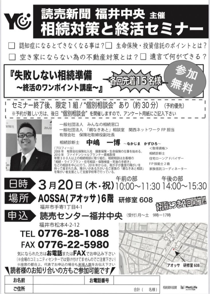 3月20日読売新聞福井中央様主催で相続セミナーを行いました。