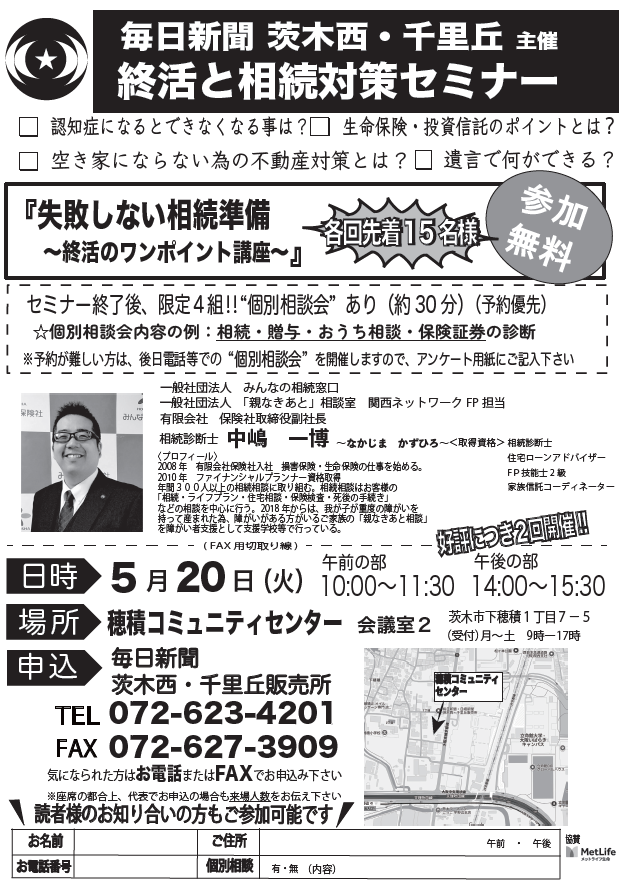 📌 毎日新聞 茨木西・千里丘 主催