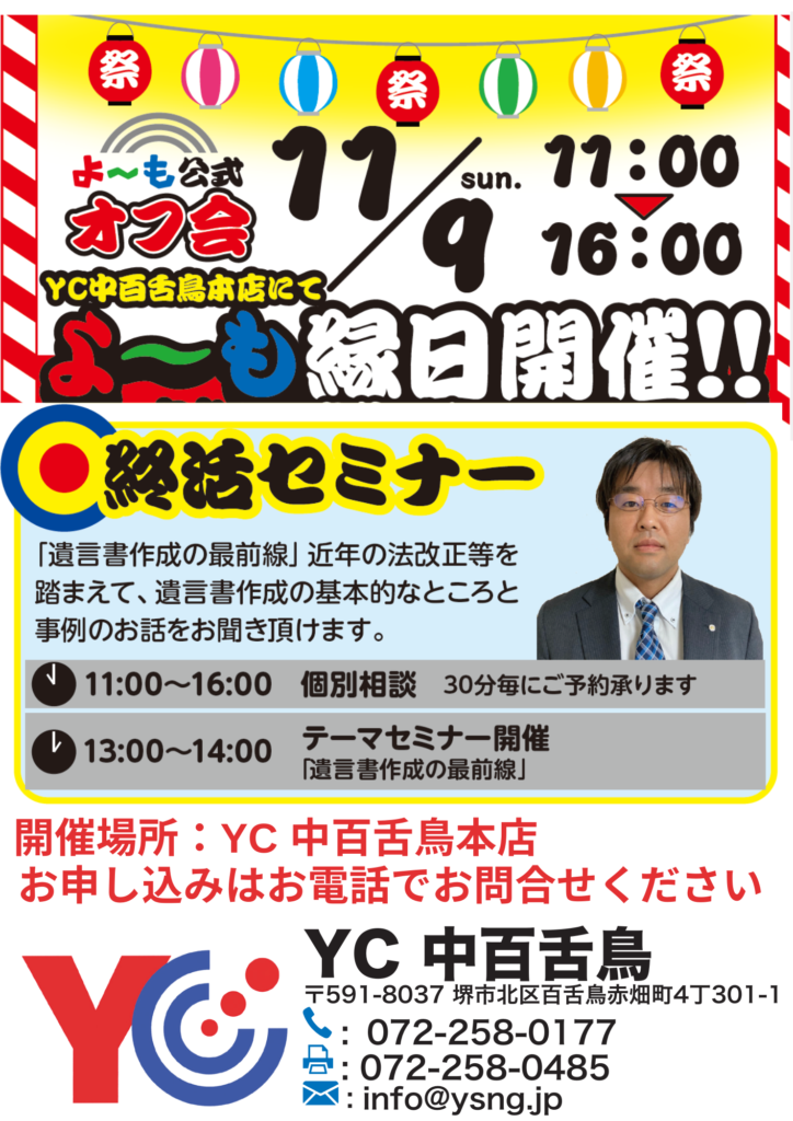 【予告】11/9読売新聞中百舌鳥本店様にて終活セミナーを開催します