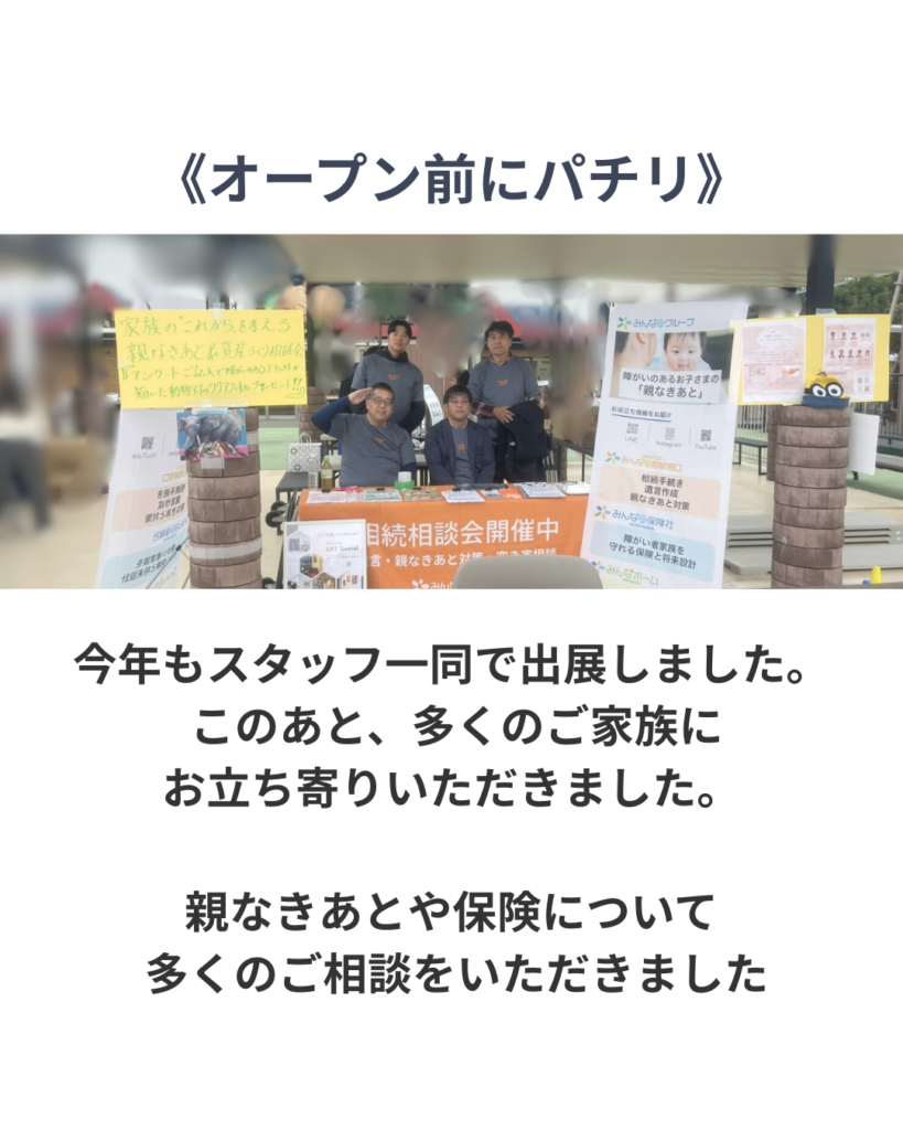 また、お母様方からは「親なきあとの相談」や、「ぜんち共済・持病のある方向けの保険」について、多くのご相談をいただきました。