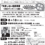 2025-06-19 / 最終更新日時 : 2025-06-19 adachi セミナー 【予告】8月18日 終活と相続対策セミナー in 京都市 京都市右京区で、終活や相続の基礎を学べる無料セミナーを開催します。空き家や名義変更の悩み、遺言の作り方など、「いつか」の前に備えておきたい情報が満載!セミナー後の個別相談も可能です(事前予約制・先着順)。 🟢 詳細は下記 […]