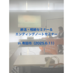 2025-06-13 / 最終更新日時 : 2025-06-19 adachi セミナー 6/11和歌山県有田市にて相続・終活セミナーを開催しました 6月11日、和歌山県有田市にて午前「相続・終活セミナー」午後「エンディングノートセミナー」の2部構成でセミナーを開催しました。 はじめての土地での開催でしたが、どちらの部も多くの方にご参加いただき、皆さんとても熱心に耳を […]